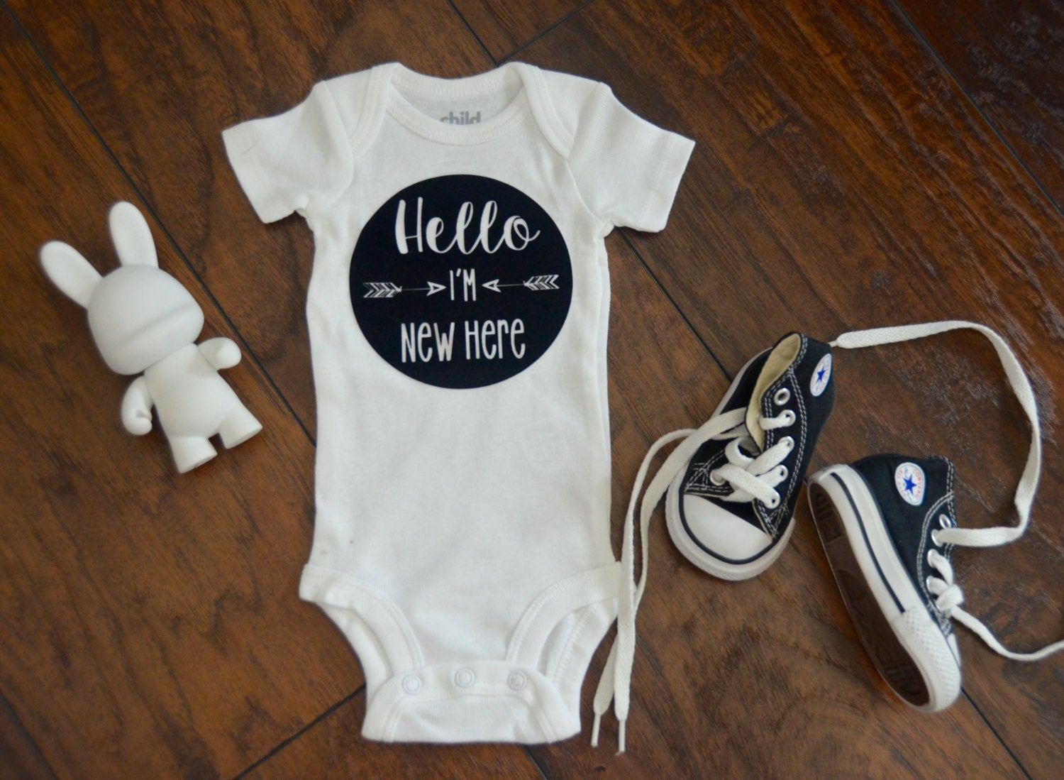 If you are interested in a different color "Hello Im New Here" bodysuit please contact me <3