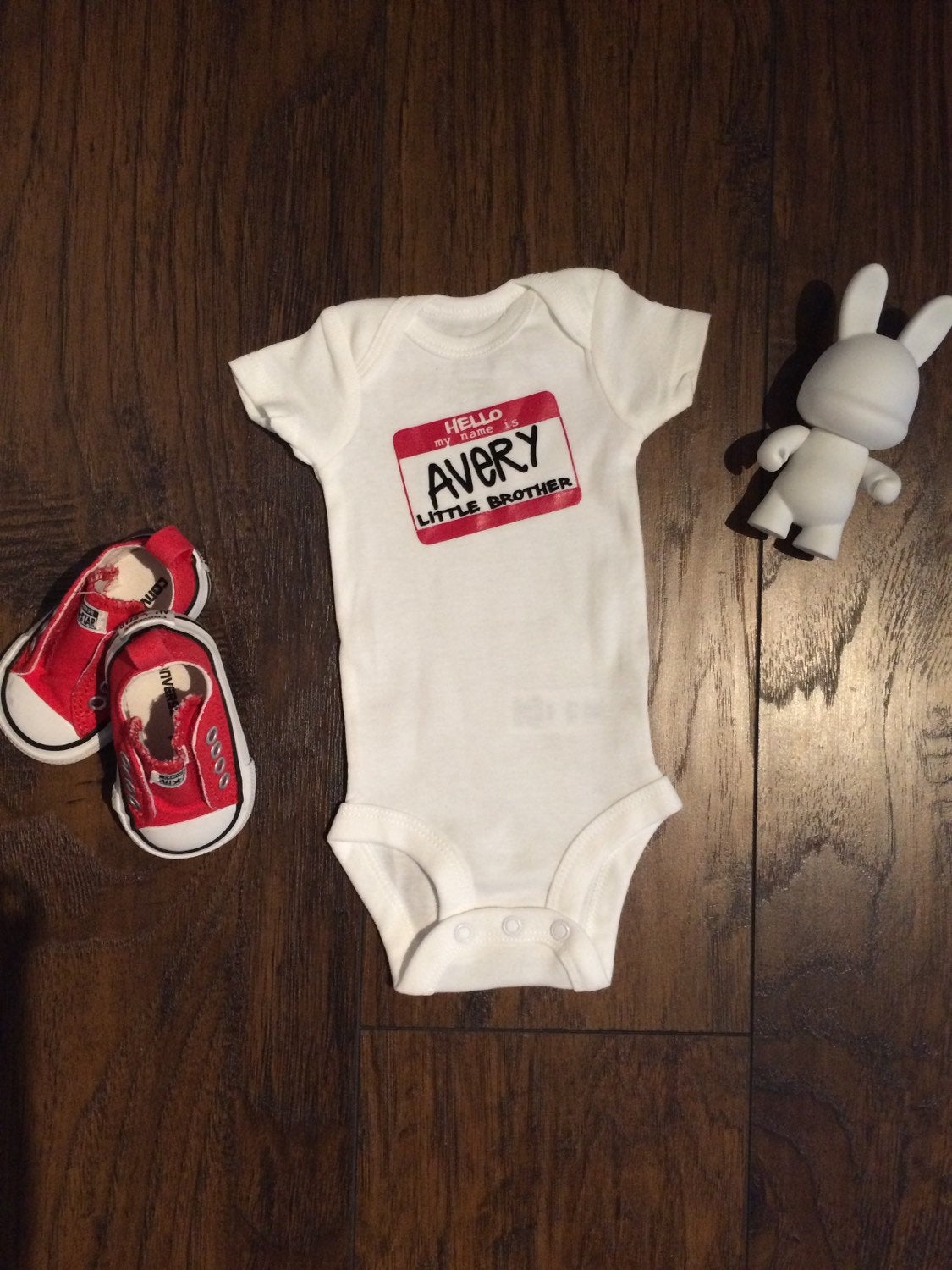 This cute bodysuit is available in baby sizes newborn to 18 months!